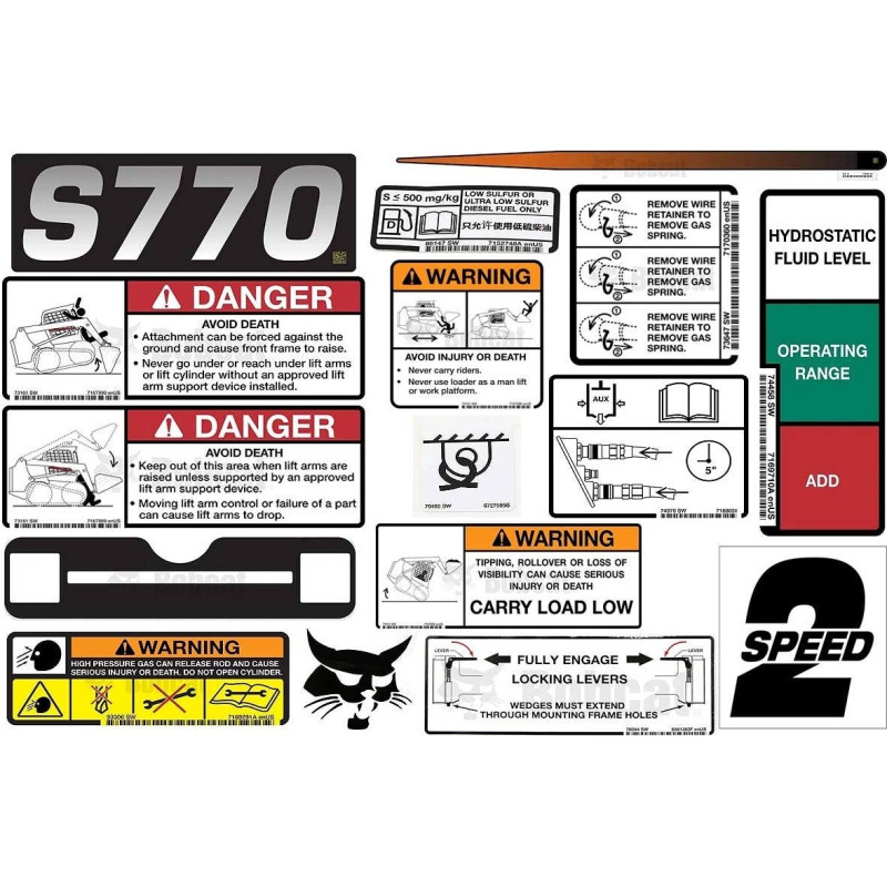 Комплект наклеек для внутреннего и внешнего перевода модели S770 Bobcat, 6990491